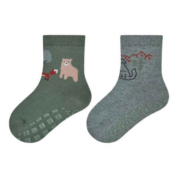 2er-Pack ABS-Socken Waldtiere grün